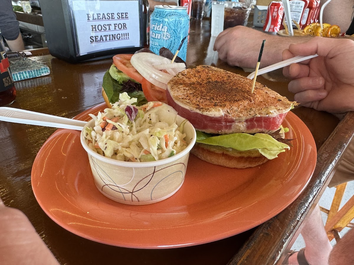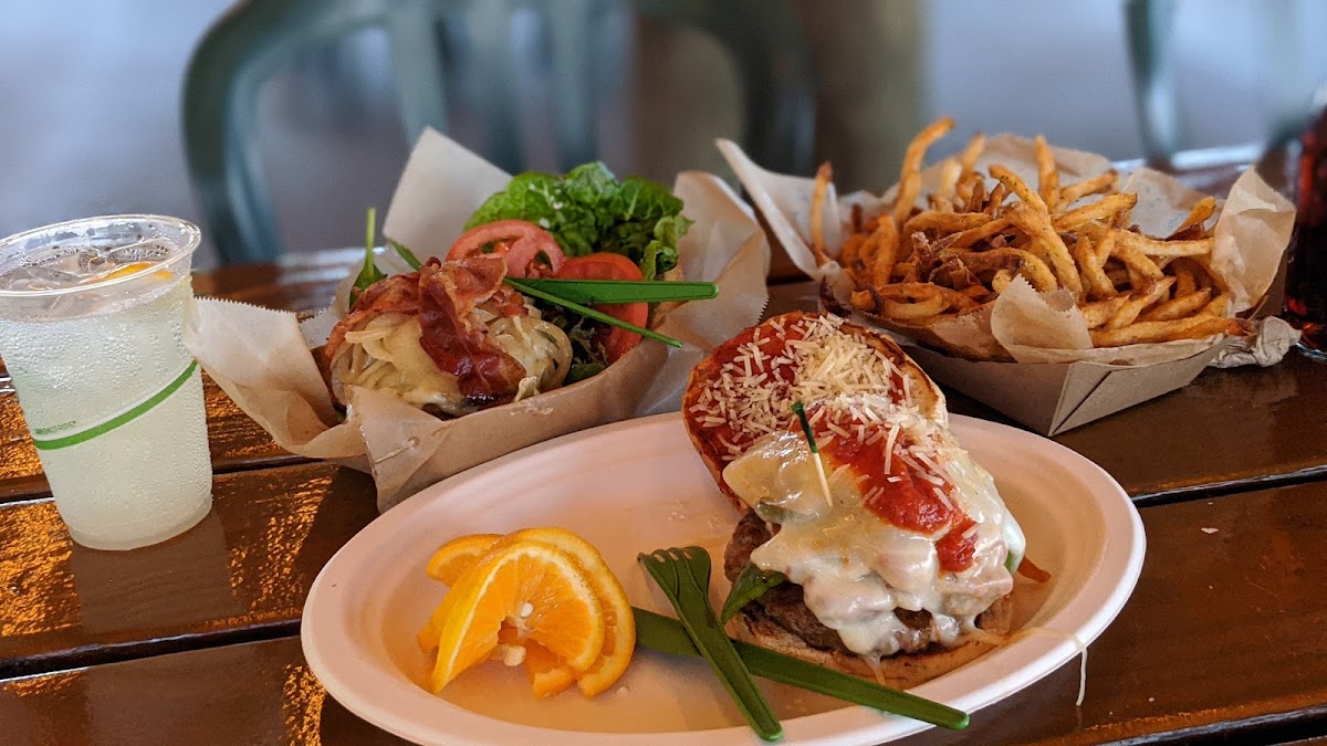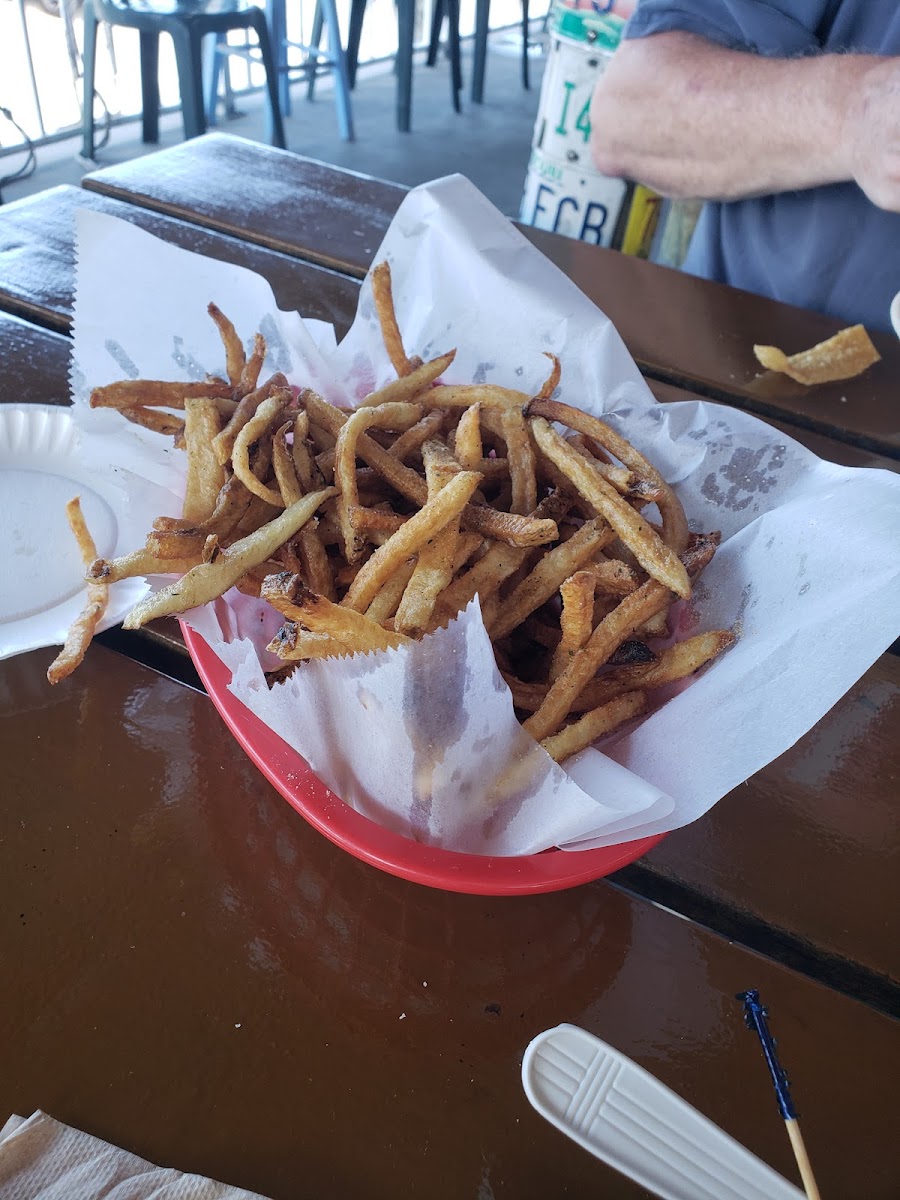 The menu offers a solid selection of comfort and coastal-inspired fare, with a distinct local touch. Standout dishes include their famously seasoned fresh hand-cut fries and inventive takes on Key lime pie, both traditional and deep-fried. Seafood options like the Hawaiian Tuna Poke Bowl and bacon-wrapped BBQ shrimp highlight regional ingredients, while the Italian Stallion Burger and chicken quesadillas provide hearty options for those craving familiar flavors. Portions tend to be generous, catering well to groups or families.